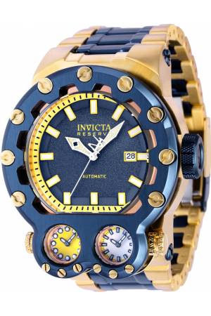 Band For Invicta Reserve 37557, Band Material Stainless Steel, Band Color Dark Blue, Gold, Band Width 34.5 mm, Band Length 210 mm, Buckle Type Fold over safety, Clasp Type Deployment, Safety