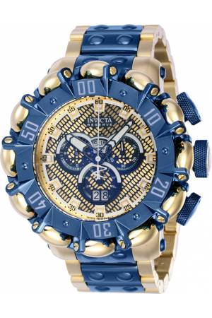 Band For Invicta Reserve 38503, Band Material Stainless Steel, Band Color Dark Blue, Gold, Band Width 26 mm, Band Length 210 mm, Buckle Type Fold over safety, Clasp Type Deployment, Safety