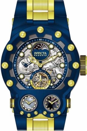 Band For Invicta Reserve 43133, Band Material Stainless Steel, Band Color Dark Blue, Gold, Band Width 34.5 mm, Band Length 210 mm, Buckle Type Fold over safety, Clasp Type Deployment, Safety