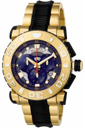 Band For Invicta Reserve 6313, Band Material Stainless Steel, Polyurethane, Band Color Gold, Black, Band Width 26 mm, Band Length 230 mm, Buckle Type Fold over safety, Clasp Type Safety, Deployment