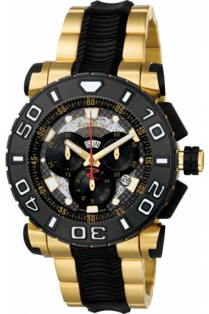 Band For Invicta Reserve 6314, Band Material Polyurethane, Stainless Steel, Band Color Black, Gold, Band Width 26 mm, Band Length 230 mm, Buckle Type Fold over safety, Clasp Type Deployment, Safety