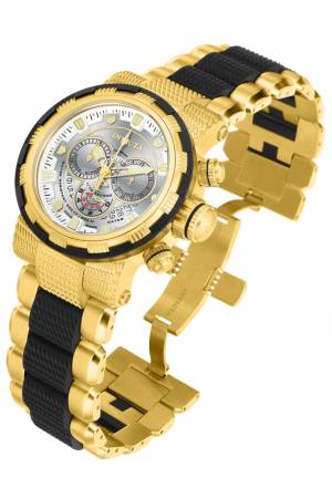 Band For Invicta Reserve 80303, Band Material Stainless Steel, Polyurethane, Band Color Gold, Black, Band Width 30 mm, Band Length 223 mm, Buckle Type Butterfly push button, Clasp Type Push Button, Deployment