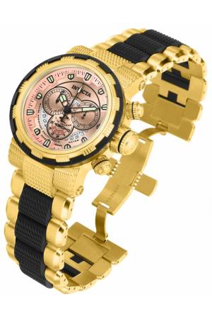 Band For Invicta Reserve 80304, Band Material Stainless Steel, Polyurethane, Band Color Gold, Black, Band Width 30 mm, Band Length 223 mm, Buckle Type Butterfly push button, Clasp Type Push Button, Deployment