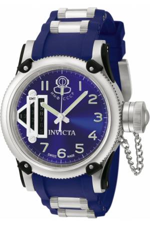 Band For Invicta Russian Diver 10208, Band Material Stainless Steel, Polyurethane, Band Color Steel, Blue, Band Width 26 mm, Band Length 220 mm, Buckle Type Buckle, Clasp Type Buckle, Foldover