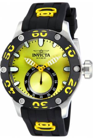 Band For Invicta Russian Diver 12705, Band Material Silicone, Band Color Yellow, Black, Band Width 26 mm, Band Length 225 mm, Buckle Type Buckle, Clasp Type Regular
