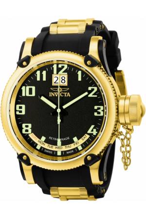 Band For Invicta Russian Diver 1597, Band Material Stainless Steel, Polyurethane, Band Color Gold, Black, Band Width 26 mm, Band Length 220 mm, Buckle Type Buckle, Clasp Type Regular