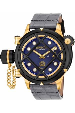 Band For Invicta Russian Diver 16187, Band Material Leather, Band Color Black, Grey, Band Width 26 mm, Band Length 210 mm, Buckle Type Buckle, Clasp Type Regular
