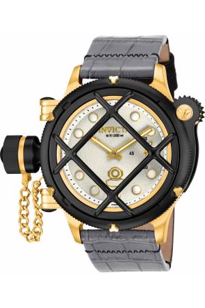 Band For Invicta Russian Diver 16189, Band Material Leather, Band Color Black, Grey, Band Width 26 mm, Band Length 210 mm, Buckle Type Buckle, Clasp Type Regular