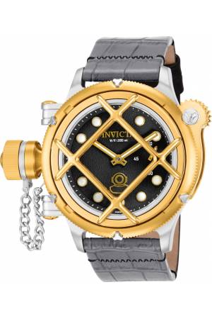 Band For Invicta Russian Diver 16202, Band Material Leather, Band Color Black, Grey, Band Width 26 mm, Band Length 210 mm, Buckle Type Buckle, Clasp Type Regular