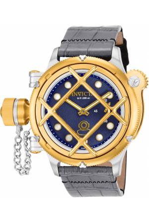 Band For Invicta Russian Diver 16204, Band Material Leather, Band Color Black, Grey, Band Width 26 mm, Band Length 210 mm, Buckle Type Buckle, Clasp Type Regular