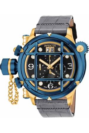 Band For Invicta Russian Diver 17343, Band Material Leather, Band Color Black, Grey, Band Width 26 mm, Band Length 210 mm, Buckle Type Buckle, Clasp Type Regular