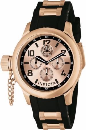 Band For Invicta Russian Diver 1817, Band Material Stainless Steel, Polyurethane, Band Color Rose Gold, Black, Band Width 22 mm, Band Length 214 mm, Buckle Type Buckle, Clasp Type Regular