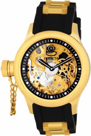 Band For Invicta Russian Diver 1844, Band Material Polyurethane, Stainless Steel, Band Color Black, Gold, Band Width 24 mm, Band Length 246.5 mm, Buckle Type Buckle, Clasp Type Regular