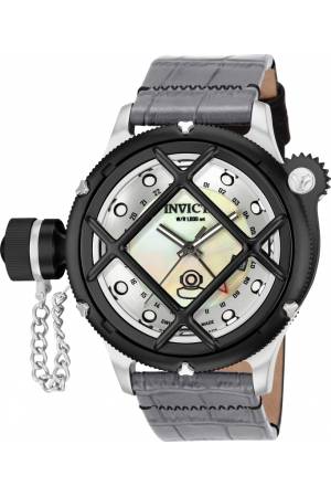 Band For Invicta Russian Diver 18589, Band Material Leather, Band Color Black, Grey, Band Width 26 mm, Band Length 210 mm, Buckle Type Buckle, Clasp Type Regular