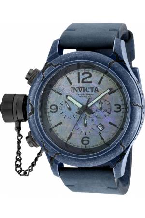 Band For Invicta Russian Diver 18761, Band Material Leather, Band Color Dark Grey, Blue, Band Width 26 mm, Band Length 210 mm, Buckle Type Buckle, Clasp Type Regular