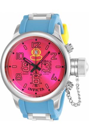 Band For Invicta Russian Diver 24013, Band Material Stainless Steel, Silicone, Band Color Steel, Blue, Yellow, Band Width 26 mm, Band Length 220 mm, Buckle Type Buckle, Clasp Type Regular