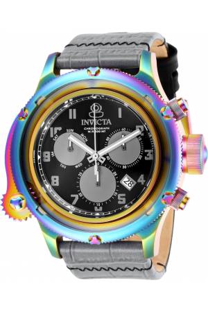 Band For Invicta Russian Diver 26588, Band Material Leather, Band Color Black, Dark Grey, Band Width 26 mm, Band Length 210 mm, Buckle Type Fold over safety, Clasp Type Safety, Deployment