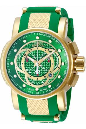 Band For Invicta S1 Rally 10565, Band Material Stainless Steel, Polyurethane, Band Color Gold, Green, Band Width 24 mm, Band Length 210 mm, Buckle Type Buckle, Clasp Type Regular