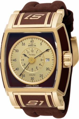 Band For Invicta S1 Rally 12598, Band Material Stainless Steel, Polyurethane, Band Color Gold, Brown, Band Width 26 mm, Band Length 190 mm, Buckle Type Buckle, Clasp Type Buckle, Foldover