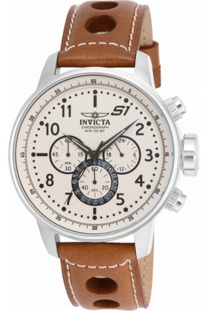 Band For Invicta S1 Rally 16009, Band Material Leather, Band Color Light Brown, White, Band Width 22 mm, Band Length 210 mm, Buckle Type Buckle, Clasp Type Regular