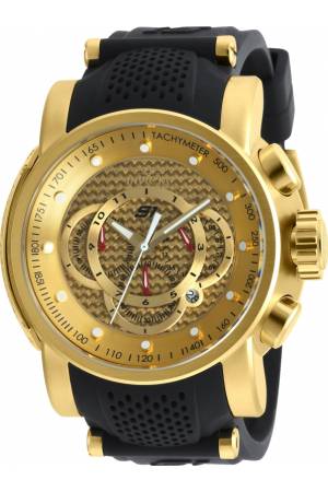 Band For Invicta S1 Rally 19326, Band Material Silicone, Stainless Steel, Band Color Black, Gold, Band Width 26 mm, Band Length 210 mm, Buckle Type Buckle, Clasp Type Regular