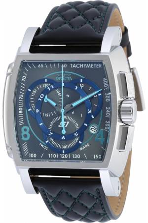 Band For Invicta S1 Rally 19519, Band Material Leather, Band Color Black, Light Blue, Band Width 26 mm, Band Length 210 mm, Buckle Type Buckle, Clasp Type Regular