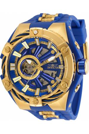 Band For Invicta S1 Rally 28859, Band Material Polyurethane, Silicone, Stainless Steel, Band Color Blue, Gold, Band Width 56 mm, Band Length 202 mm, Buckle Type Buckle, Clasp Type Regular