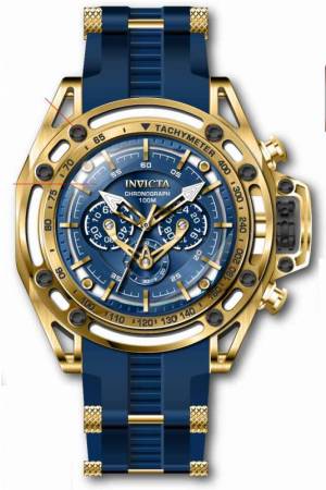 Band For Invicta S1 Rally 38156, Band Material Silicone, Stainless Steel, Band Color Blue, Gold, Band Width 26 mm, Band Length 210 mm, Buckle Type Buckle, Clasp Type