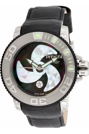Band For Invicta Sea Hunter 1314, Band Material Leather, Band Color Black, Band Width 26 mm, Band Length 205 mm, Buckle Type Buckle, Clasp Type Regular