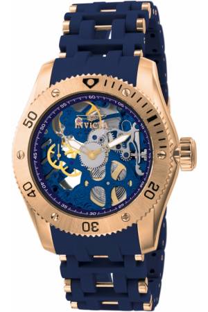 Band For Invicta Sea Spider 10348, Band Material Polyurethane, Stainless Steel, Band Color Blue, Rose Gold, Band Width 26 mm, Band Length 220 mm, Buckle Type Fold over safety, Clasp Type Safety
