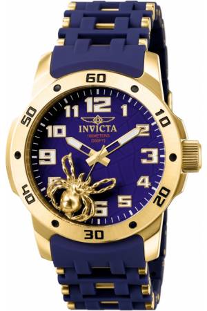 Band For Invicta Sea Spider 1125, Band Material Stainless Steel, Polyurethane, Band Color Gold, Blue, Band Width 26 mm, Band Length 213 mm, Buckle Type Fold over safety,