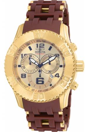 Band For Invicta Sea Spider 15242, Band Material Stainless Steel, Polyurethane, Band Color Gold, Brown, Band Width 26 mm, Band Length 215 mm, Buckle Type Fold over safety, Clasp Type , Safety
