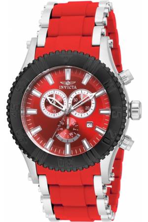 Band For Invicta Sea Spider 15382, Band Material Polyurethane, Stainless Steel, Band Color Red, Steel, Band Width 26 mm, Band Length 237 mm, Buckle Type Fold over safety, Clasp Type Safety,