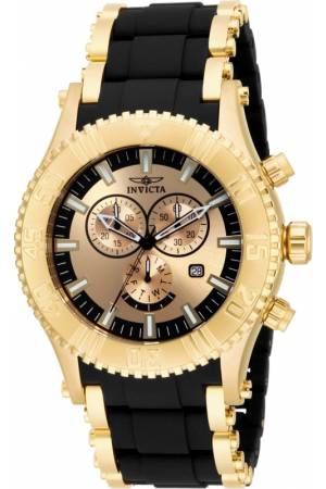 Band For Invicta Sea Spider 15383, Band Material Polyurethane, Stainless Steel, Band Color Black, Gold, Band Width 26 mm, Band Length 237 mm, Buckle Type Fold over safety, Clasp Type Safety,