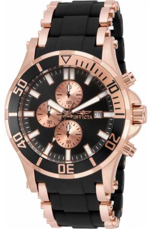 Band For Invicta Sea Spider 17081, Band Material Stainless Steel, Polyurethane, Band Color Rose Gold, Black, Band Width 26 mm, Band Length 215 mm, Buckle Type Fold over safety, Clasp Type Safety
