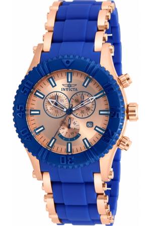 Band For Invicta Sea Spider 18226, Band Material Stainless Steel, Polyurethane, Band Color Rose Gold, Blue, Band Width 26 mm, Band Length 225 mm, Buckle Type Fold over safety, Clasp Type Safety