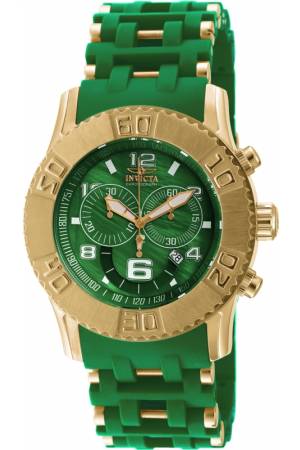Band For Invicta Sea Spider 19786, Band Material Stainless Steel, Polyurethane, Band Color Gold, Green, Band Width 26 mm, Band Length 215 mm, Buckle Type Fold over safety, Clasp Type Safety