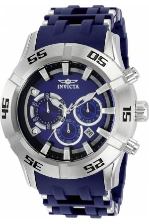 Band For Invicta Sea Spider 21817, Band Material Polyurethane, Stainless Steel, Band Color Blue, Steel, Band Width 26 mm, Band Length 210 mm, Buckle Type Fold over safety, Clasp Type Safety
