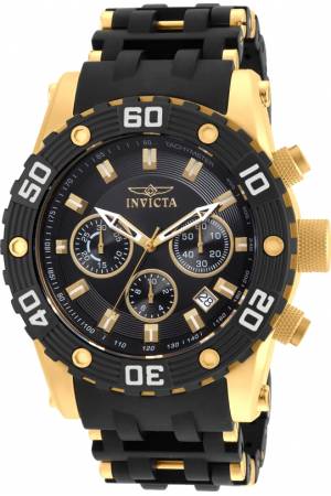 Band For Invicta Sea Spider 22090, Band Material Stainless Steel, Silicone, Band Color Gold, Black, Band Width 26 mm, Band Length 200 mm, Buckle Type Fold over safety, Clasp Type Safety