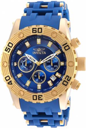 Band For Invicta Sea Spider 22091, Band Material Stainless Steel, Silicone, Band Color Gold, Blue, Band Width 26 mm, Band Length 200 mm, Buckle Type Fold over safety, Clasp Type Safety