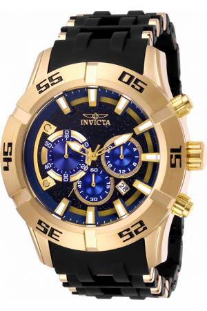 Band For Invicta Sea Spider 26538, Band Material Polyurethane, Stainless Steel, Band Color Black, Gold, Band Width 26 mm, Band Length 195 mm, Buckle Type Fold over safety, Clasp Type Regular