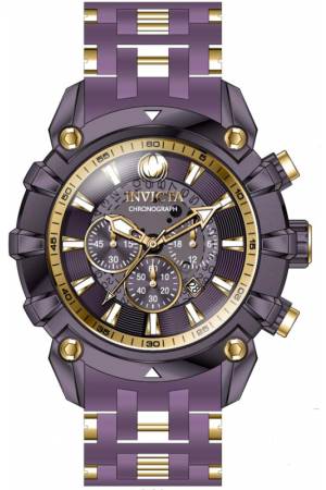 Band For Invicta Sea Spider 42131, Band Material Polyurethane, Stainless Steel, Band Color Purple, Gold, Band Width 26 mm, Band Length 210 mm, Buckle Type Fold over safety, Clasp Type