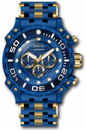 Band For Invicta Sea Spider 43174, Band Material Polyurethane, Stainless Steel, Band Color Blue, Gold, Band Width 26 mm, Band Length 180 mm, Buckle Type Fold over safety, Clasp Type