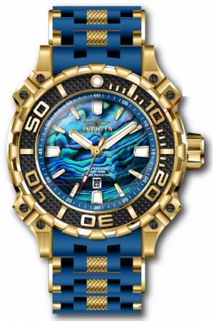 Band For Invicta Sea Spider 43176, Band Material Polyurethane, Stainless Steel, Band Color Blue, Gold, Band Width 26 mm, Band Length 190 mm, Buckle Type Fold over safety, Clasp Type