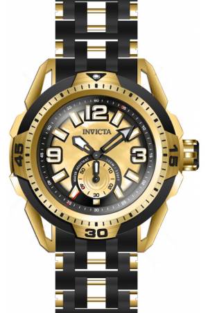 Band For Invicta Sea Spider 43837, Band Material Polyurethane, Stainless Steel, Band Color Black, Gold, Band Width 26 mm, Band Length 190 mm, Buckle Type Fold over safety, Clasp Type