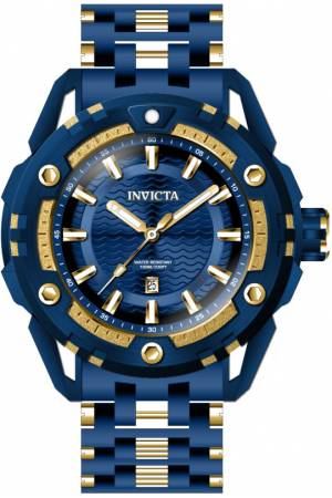Band For Invicta Sea Spider 43845, Band Material Polyurethane, Stainless Steel, Band Color Blue, Gold, Band Width 26 mm, Band Length 190 mm, Buckle Type Fold over safety, Clasp Type
