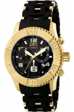 Band For Invicta Sea Spider 6711, Band Material Stainless Steel, Polyurethane, Band Color Gold, Black, Band Width 26 mm, Band Length 215 mm, Buckle Type Fold over safety, Clasp Type Safety