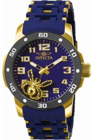 Band For Invicta Sea Spider 80113, Band Material Polyurethane, Stainless Steel, Band Color Blue, Gold, Band Width 26 mm, Band Length 213 mm, Buckle Type Fold over safety,