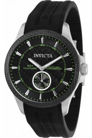 Band For Invicta Sea Vulture 35029, Band Material Silicone, Band Color Black, Band Width 20 mm, Band Length 215 mm, Buckle Type Butterfly push button, Clasp Type