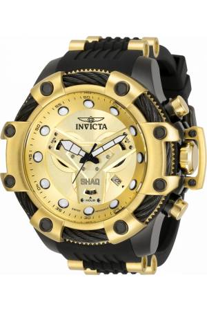 Band For Invicta SHAQ 33669, Band Material Silicone, Stainless Steel, Band Color Black, Gold, Band Width 26 mm, Band Length 190 mm, Buckle Type Buckle, Clasp Type